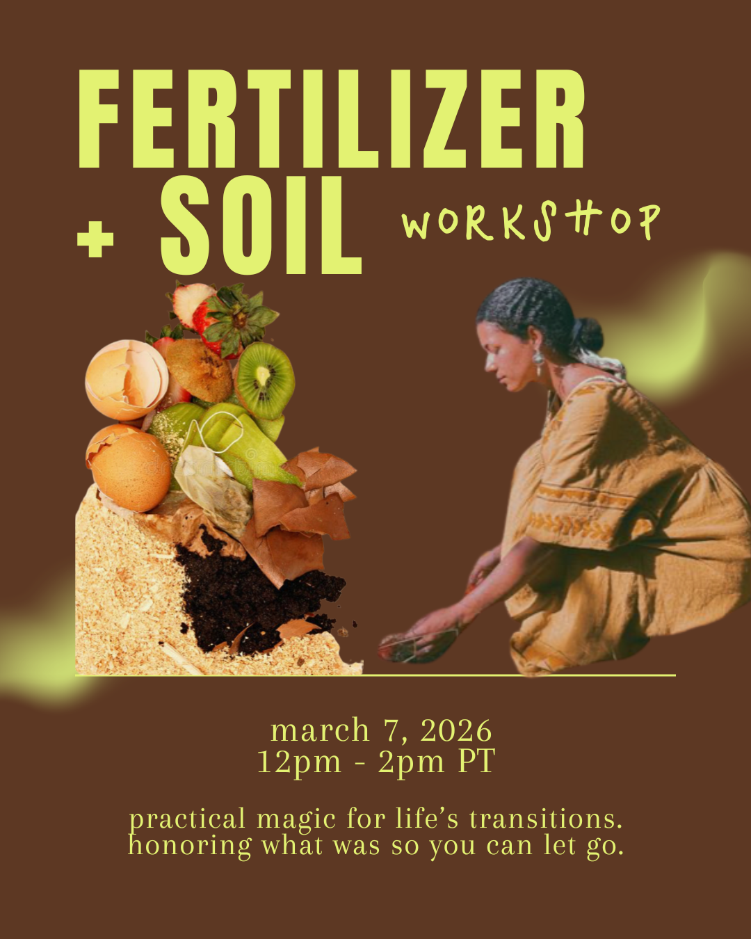 fertilizer + soil is a two-hour ritual workshop for humans in transition—ready to compost the past, tend the present, and root into their present becoming through transformational NLP change work, embodied reflection, and sacred self-inquiry.